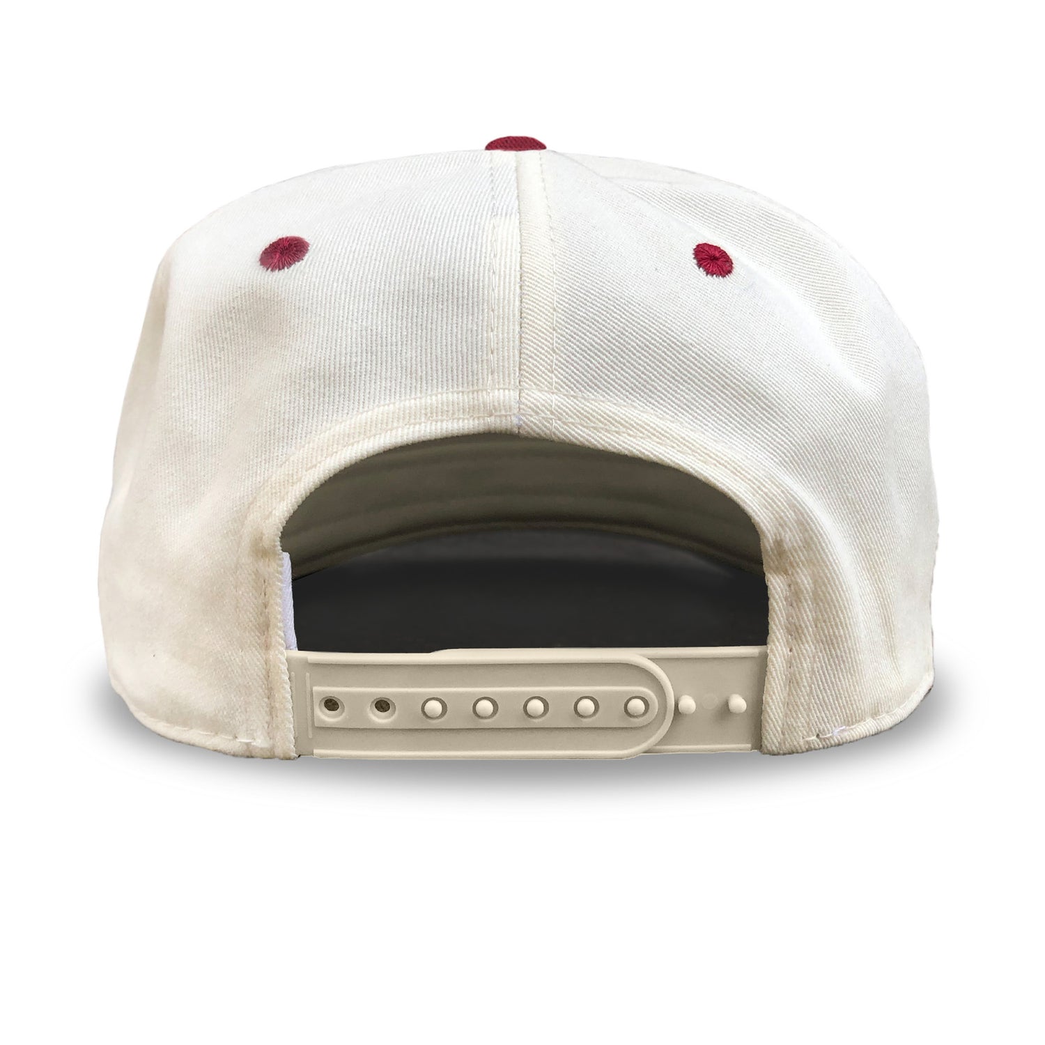- Color: Cream hat, maroon brim